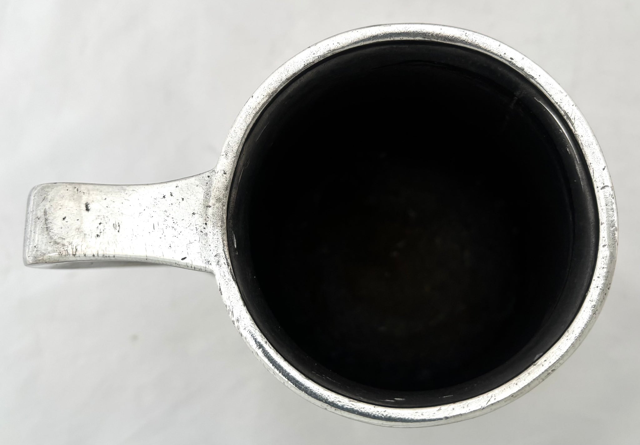 In good condition with no dents, creases or repair. Moderate surface wear and pitting commensurate with age. The tankard does not leak.
