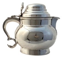 19th Century Silver Plate on Copper Ale Jug with Inset Coin to the Cover. Features a stepped, domed cover and ornate handle.