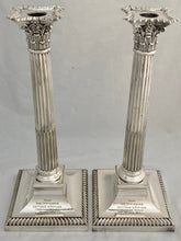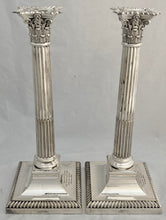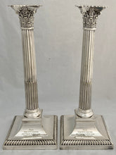 George V Pair of Silver Plated Corinthian Column Candlesticks, each with Inscription 'From The Officers 55th Coke's Rifles (Frontier Force) 1st June 1915'. The nozzles are fixed.