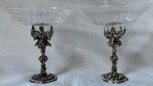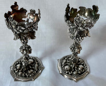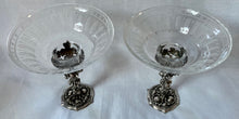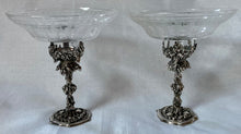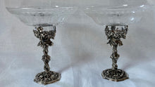 Early Victorian Pair of Silver Plated Comports with associated Etched & Cut Glass Dishes. The stands of naturalistic form with trailing leaf and vine decoration.