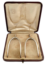 An Edwardian cased set of novelty silver wishbone sugar nips. They are housed in their original "Asprey late Leuchars" burgundy Morocco leather case with satin and velvet interior.