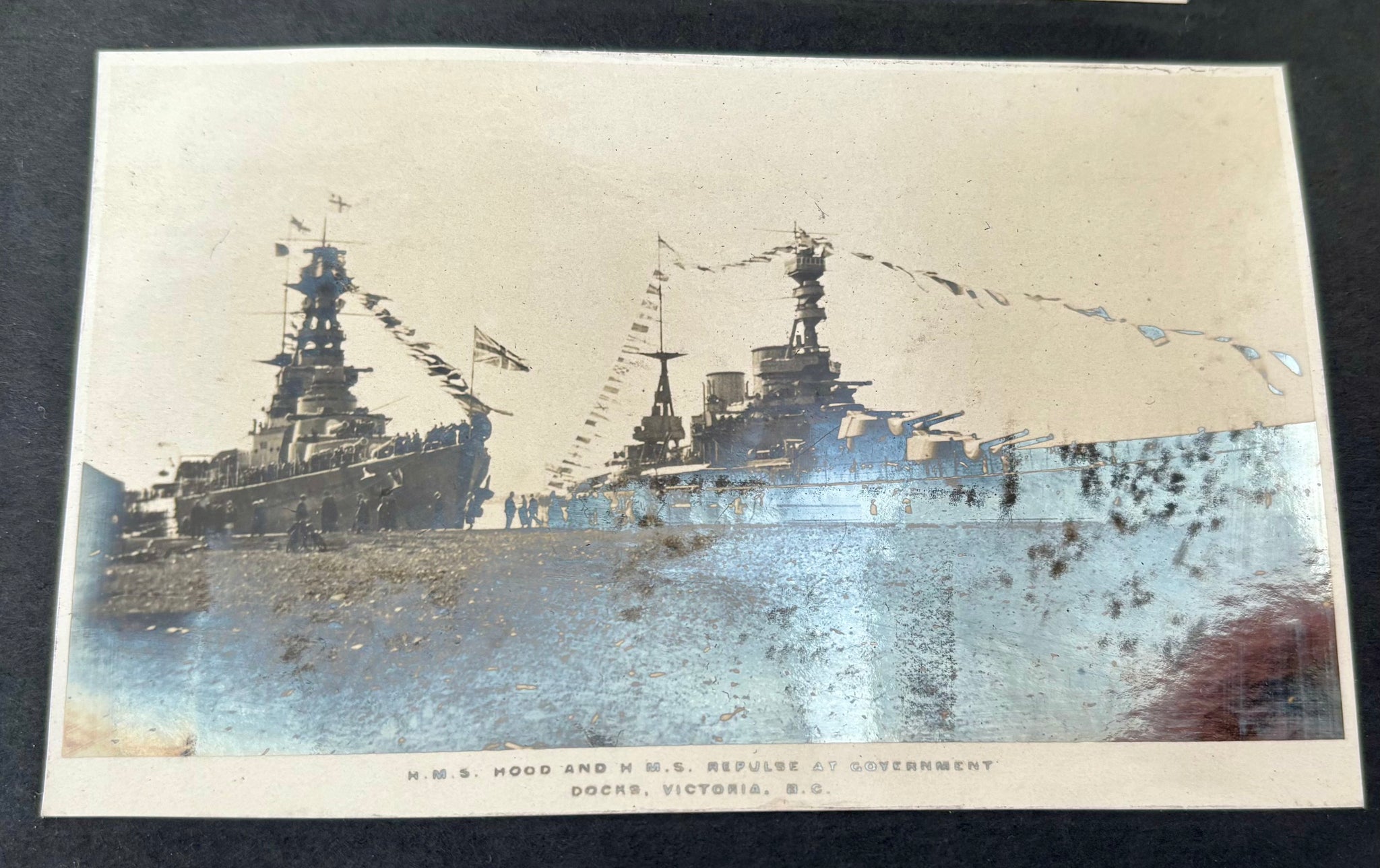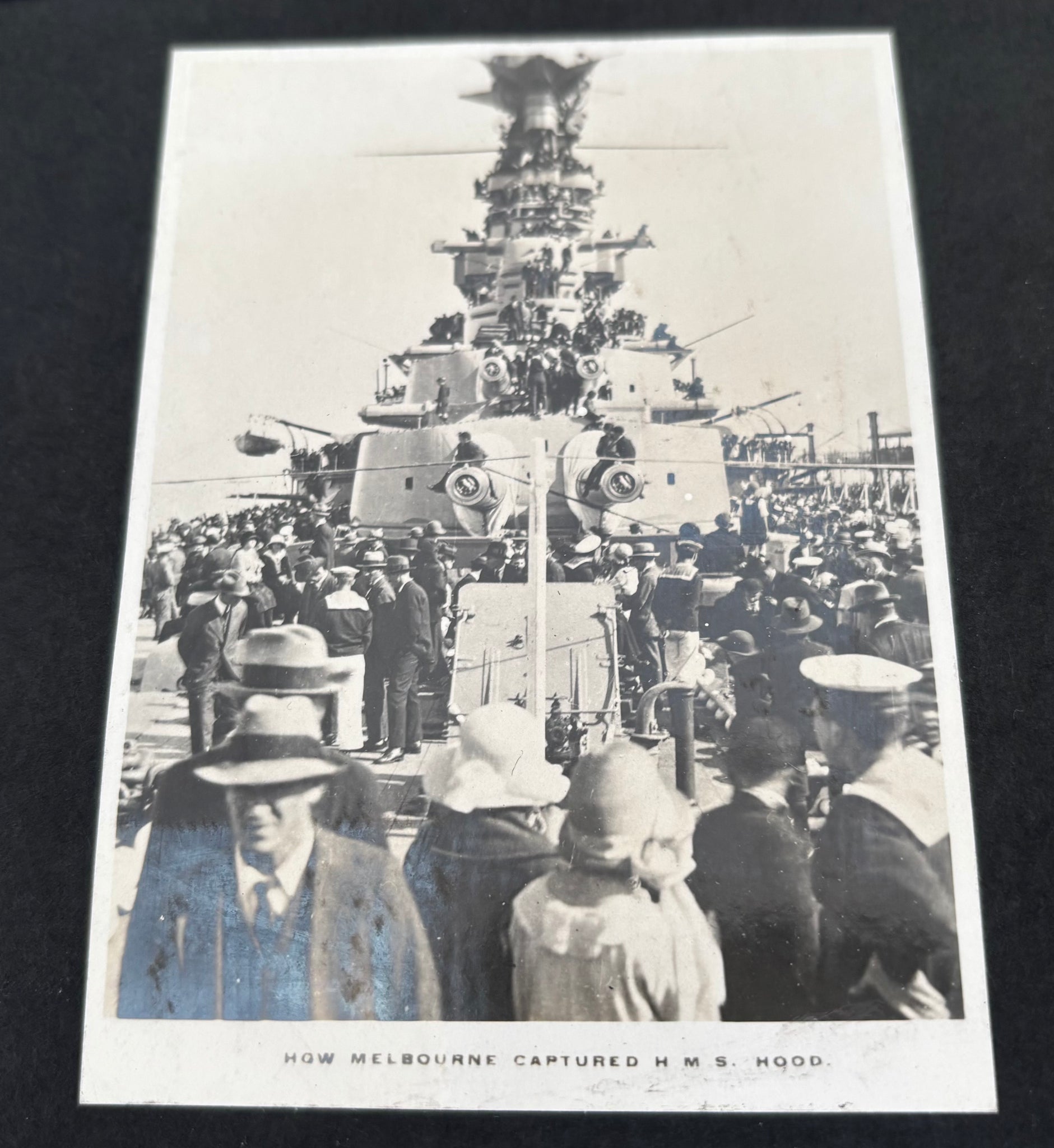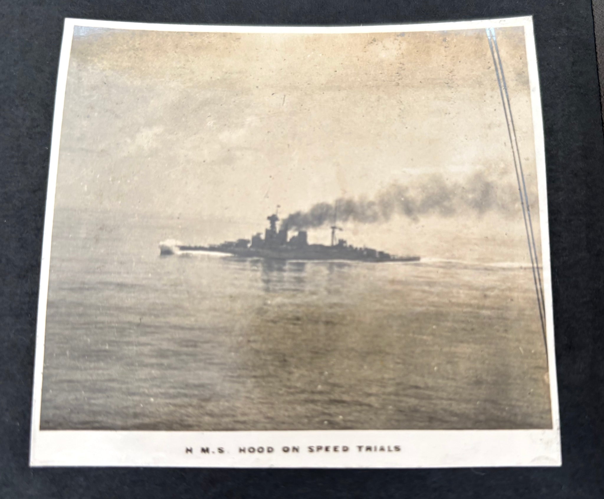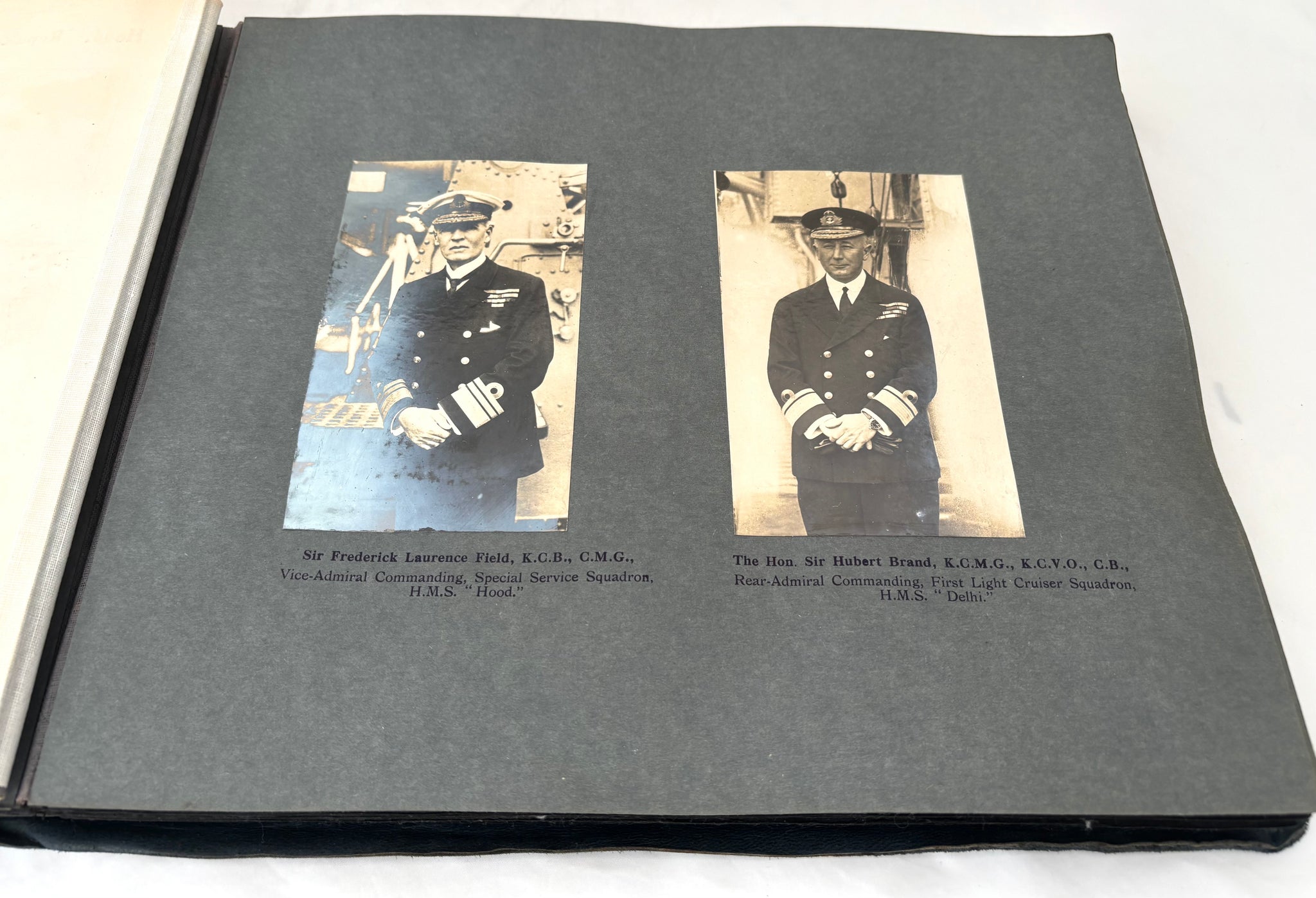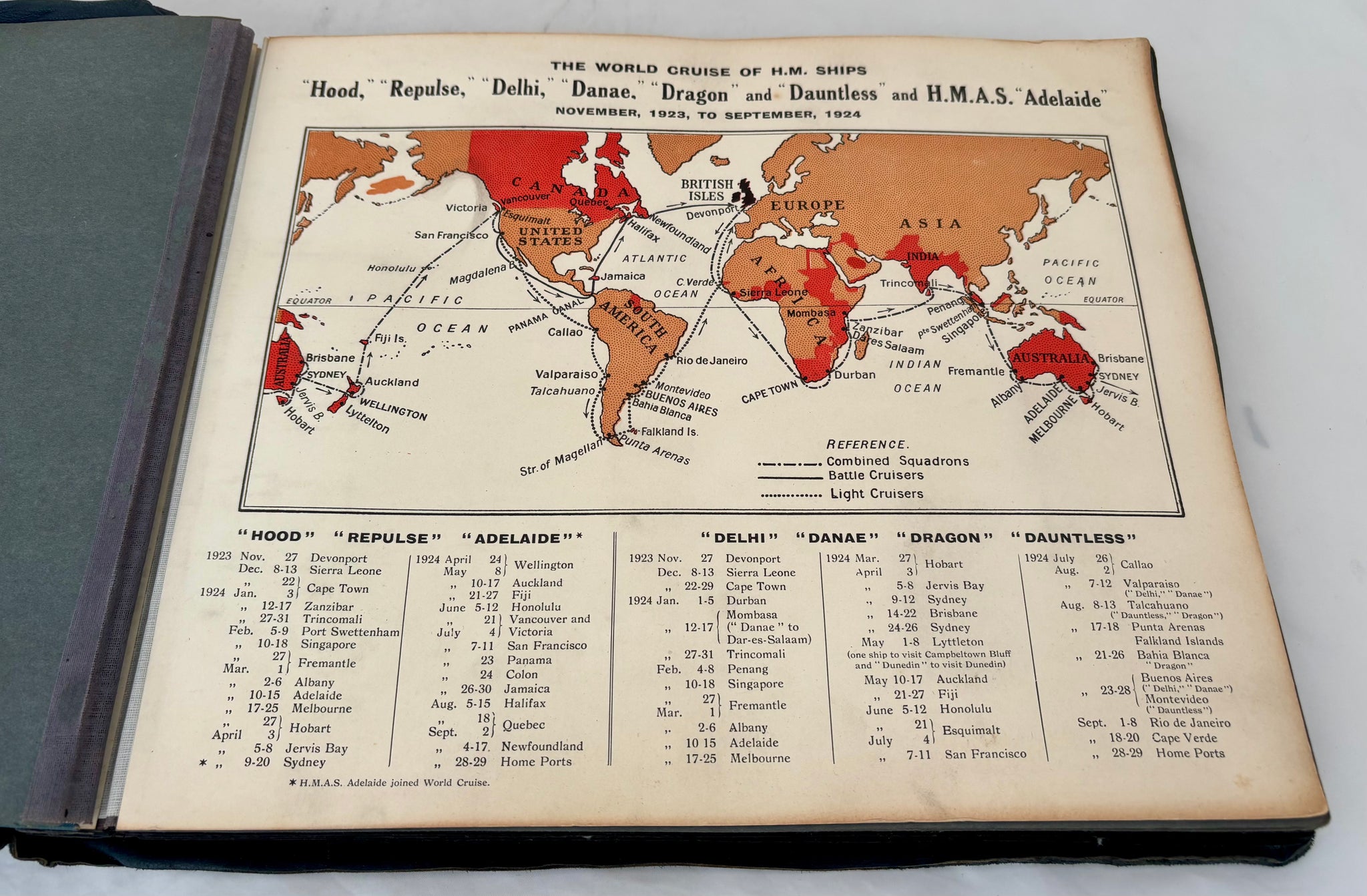 HMS Hood & The World Cruise of the British Special Service Squadron 1923 - 1924 Photographic Record. Published by the Empire Photographic Publishing Co., Oxford Street, London. The album contains approximately 351 photos (a selection have been shown on this website listing). A copy is held by Royal Museums Greenwich. The album cover in soft blue leather with gilt lettering.