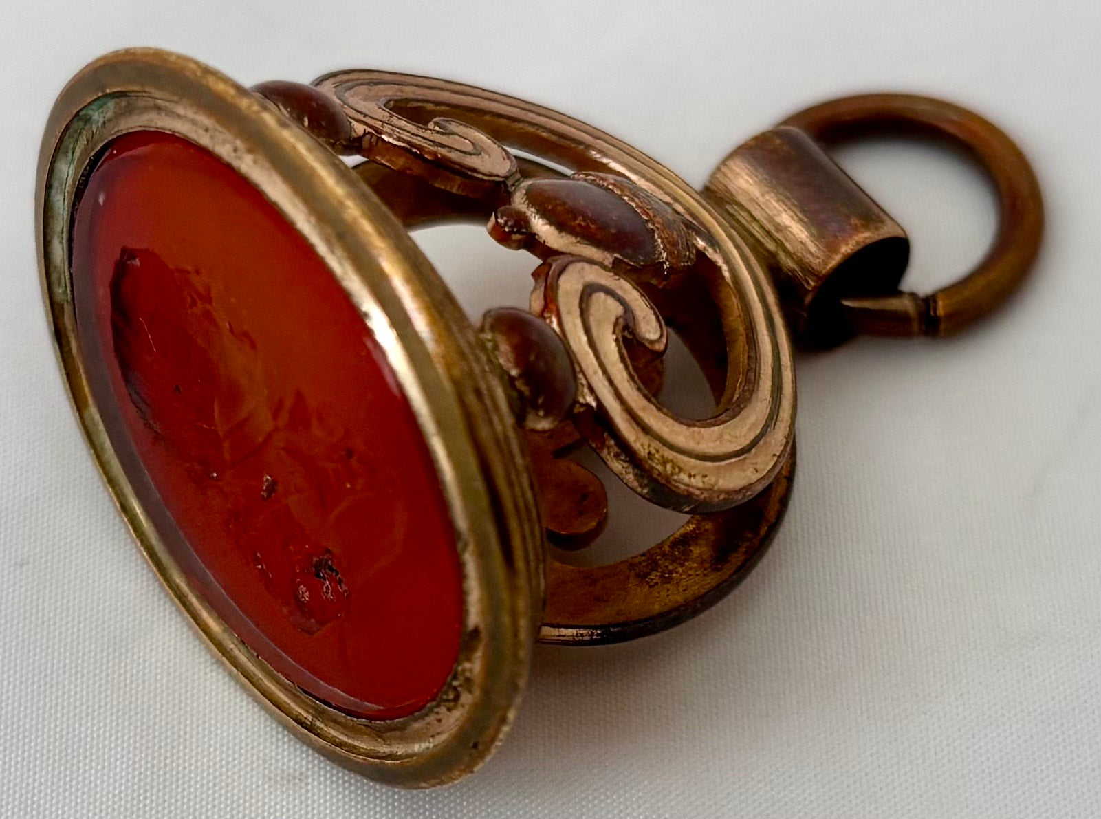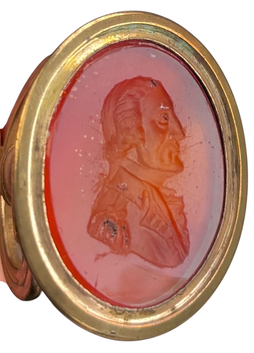 Late 18th Century Gilt Metal Military Officer Portrait Profile Intaglio Fob Seal. The seal of openwork form with the acorn symbol.