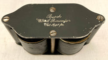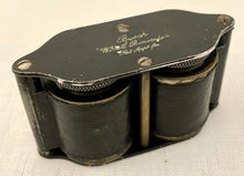 A pair of early 20th century compact opera glasses retailed by Asprey and manufactured by Busch Winett. Contained in original leather pouch, also stamped Asprey London. The glasses fold out and expand to allow viewing. Monogrammed to the cover for H.A.D.