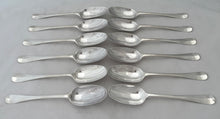 Approximate total weight of all twelve spoons is 844 grams or 27.1 troy ounces.